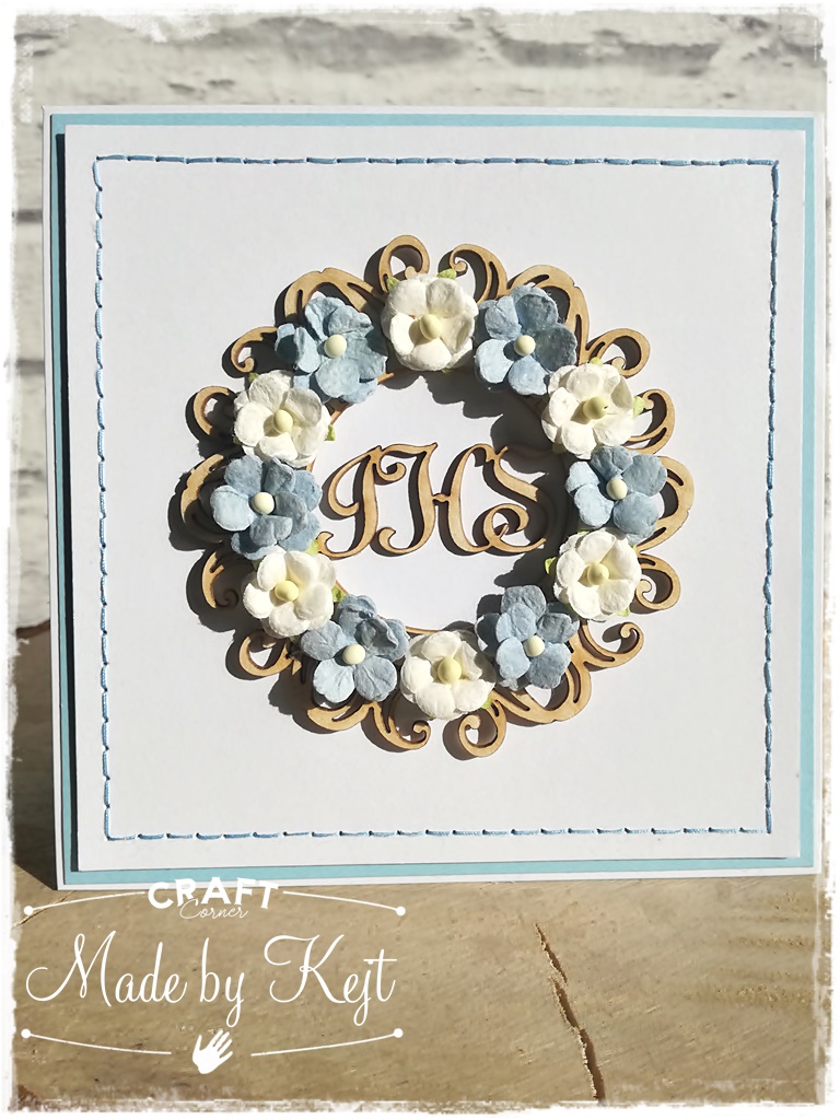kwiaty w kolorze tła i nitki i mamy prostą komunijną kartkę gotową.