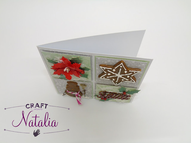 Zielone poletka zdobi poinsecja i tekturka w towarzystwie gazy