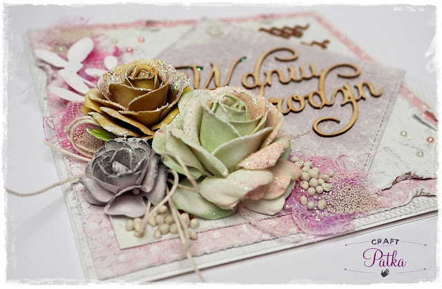 Dodałam trochę tiulu, gazy, tekturki,brokatu, nieco kuleczek 3d (w dwóch rozmiarach)