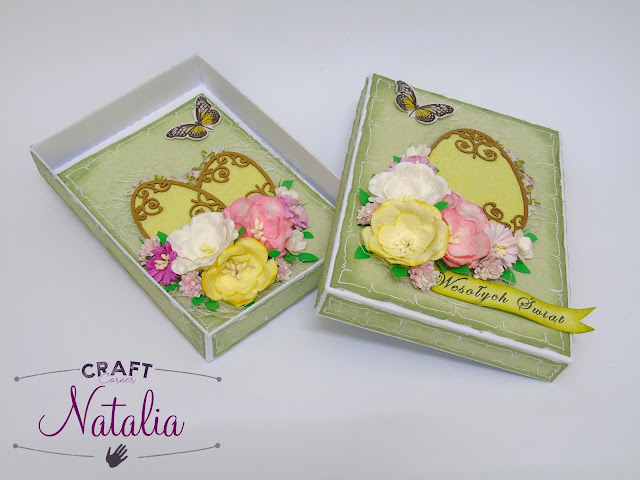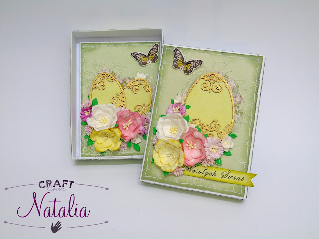 Pudełko jak i kartkę okleiłam papierem Galerii Papieru: