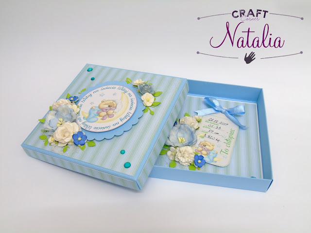 Całość wykończyłam kokardą i niebieskimi dżetami.