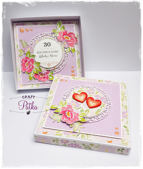 Do wykonania pracy użyłam bazy kartki wraz z pudełkiem w formacie 13,5 x 13,5,