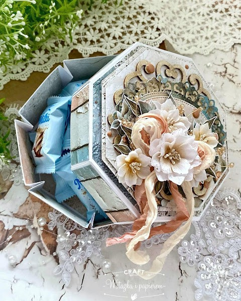 - Ośmiokątne pudełko. Idealne na biżuterię, perfumy. Karton wykonany z wysokiej jakości papieru o gramaturze 300g/m2. Posiada bigi, wymaga klejenia.