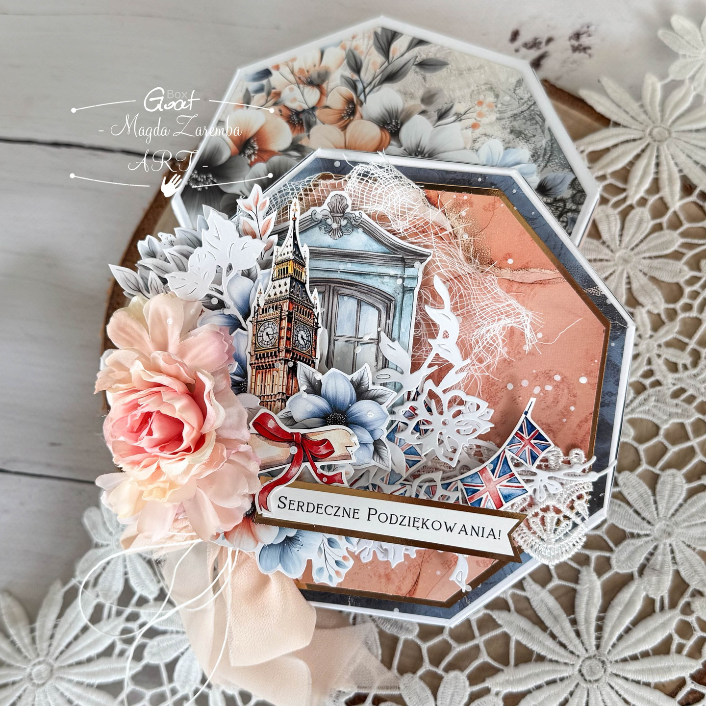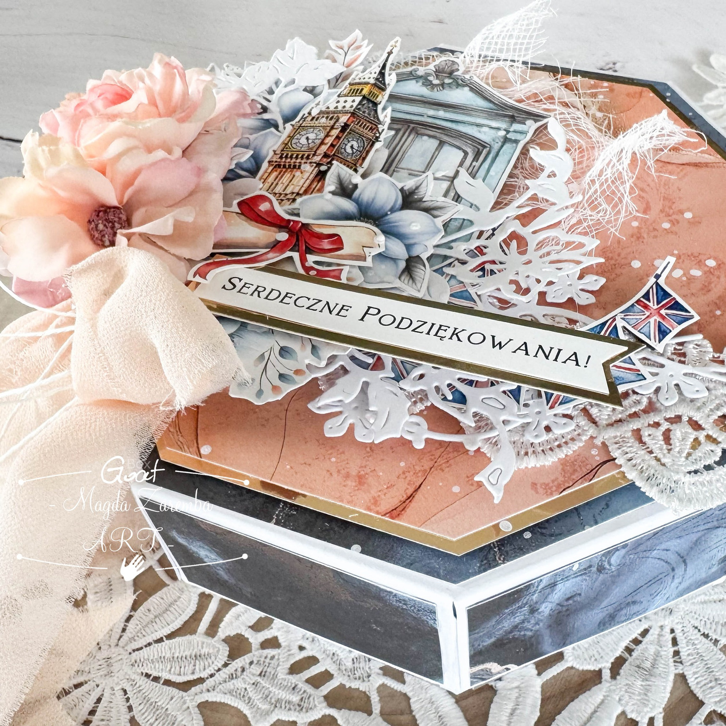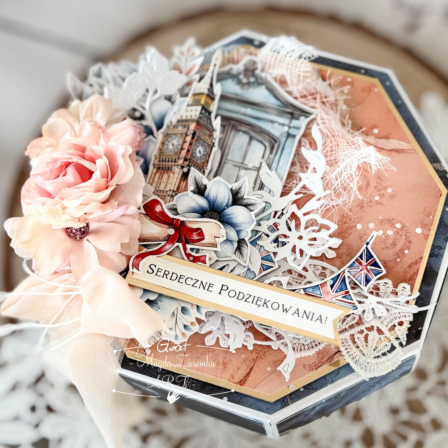 - Ośmiokątne pudełko. Idealne na biżuterię, perfumy. Karton wykonany z wysokiej jakości papieru o gramaturze 300g/m2. Posiada bigi, wymaga klejenia.