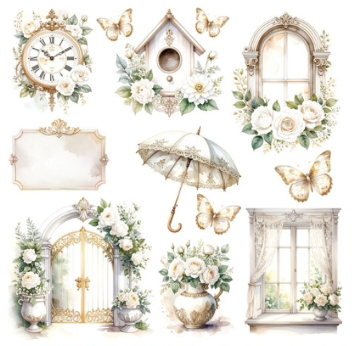 • 15 dwustronnych papierów - 3 x 5 arkuszy ( pomniejszone wzory z dużych papierów ) i 2 takich samych okładek, na odwrocie których znajdują się elementy do wycinania