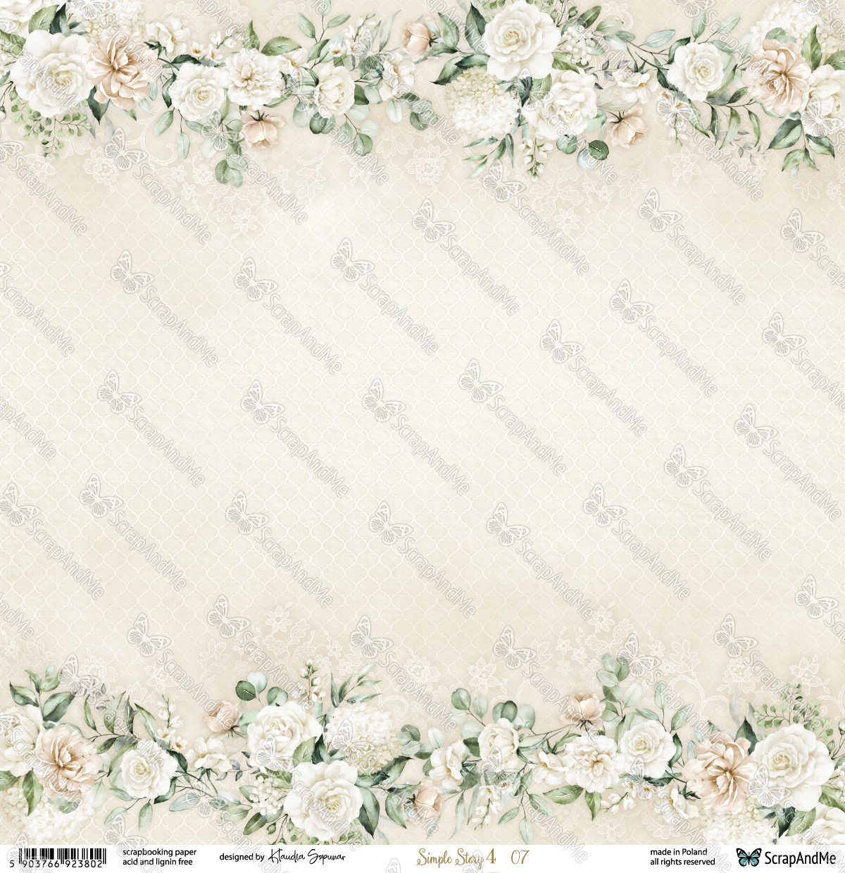 Arkusz 07/08 z kolekcji Simple Story 4 - marki ScrapAndMe autorstwa Klaudii Szpunar - utrzymany w bia艂o-be偶owej tonacji kolorystycznej.聽