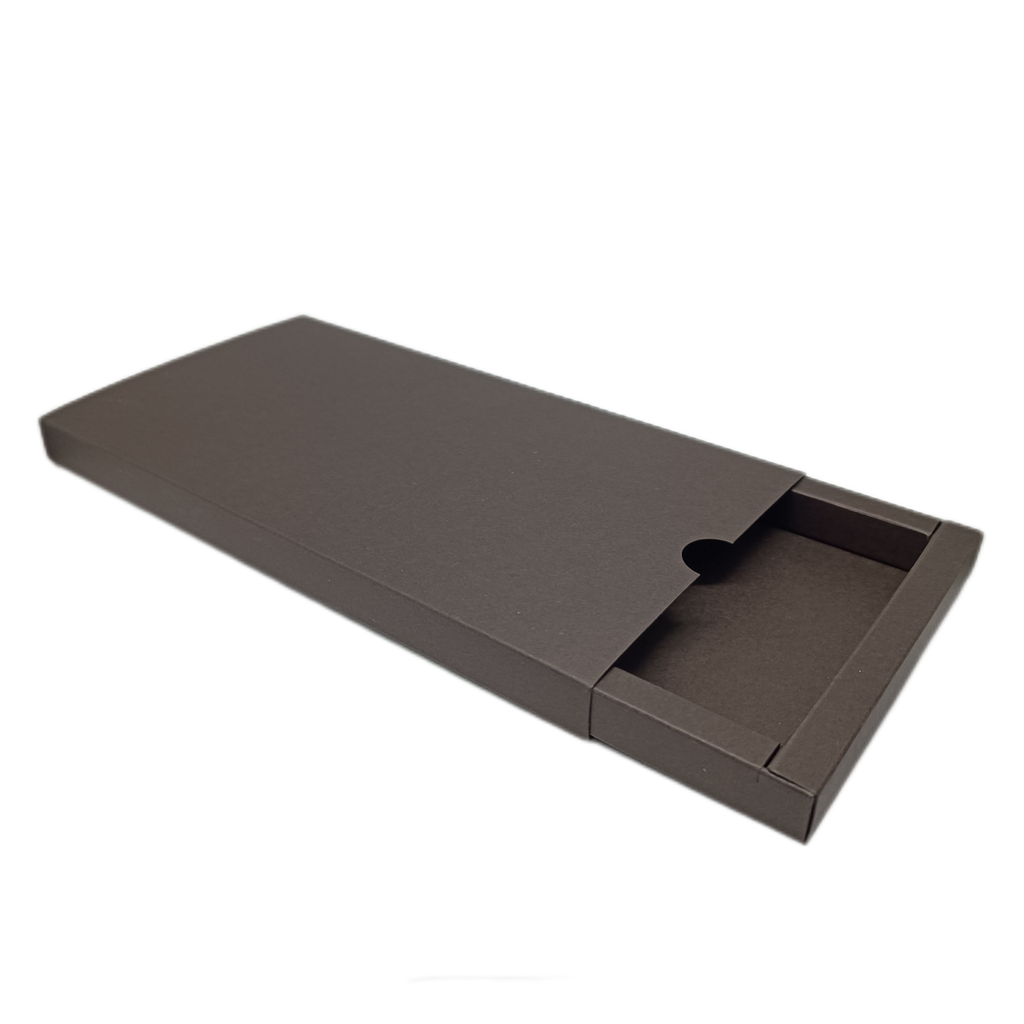 • Prostokątne pudełko szufladkowe na voucher, kartę okolicznościową formatu DL. Pudełko składa się z dwóch części, szufladka oraz wsuwka. Całość wykonana z wysokiej jakości bezdrzewnego papieru o gramaturze min 300g/m2.